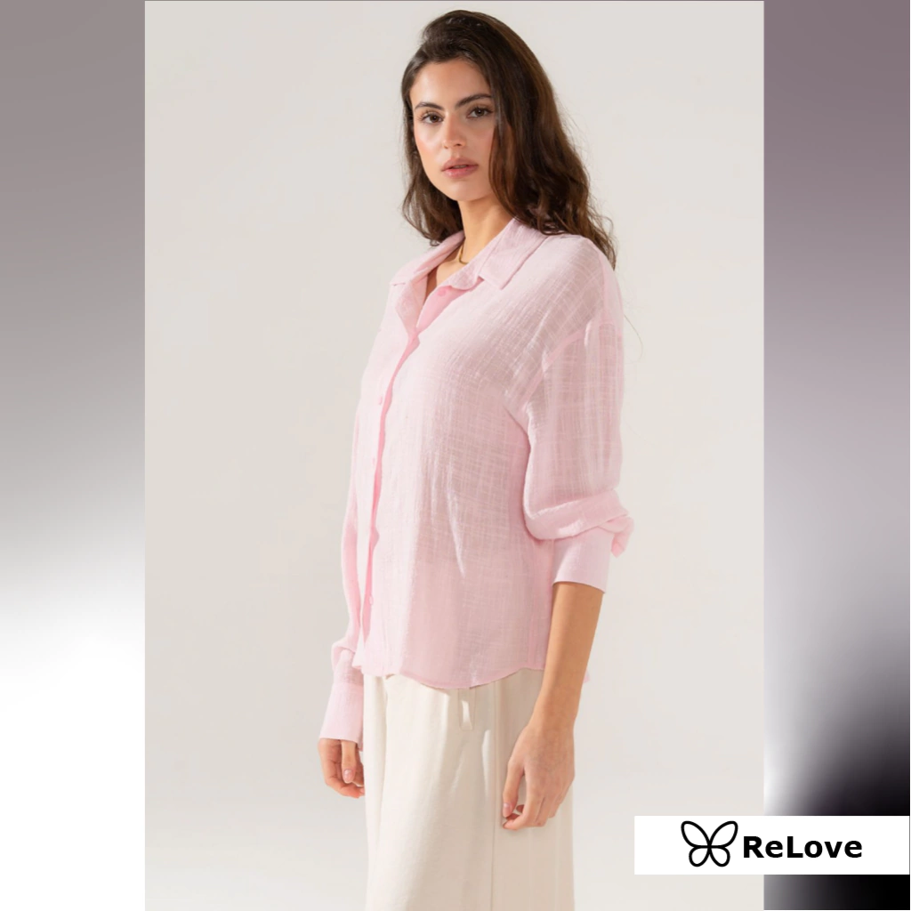 Camisa de gasa arrugada con botones delanteros y lazo en la espalda. Ideal para un look fresco y versátil.
